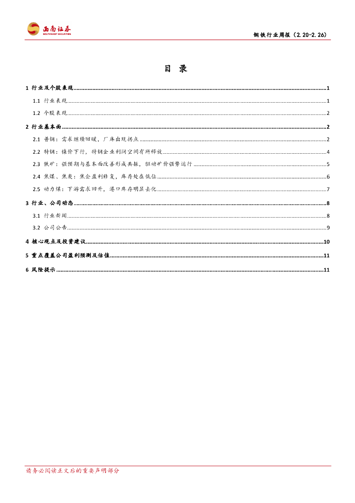 西南证券:钢铁行业周报:需求继续回暖,厂库拐点出现.pdf
