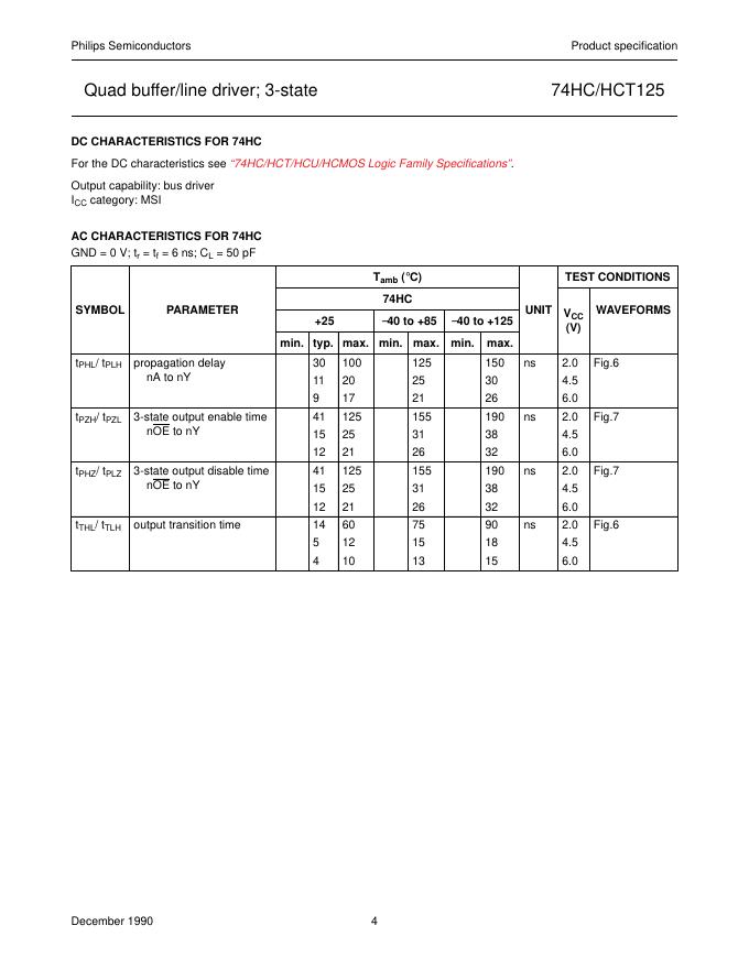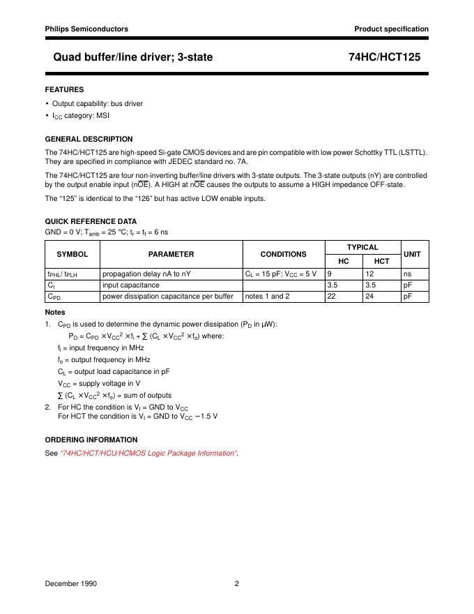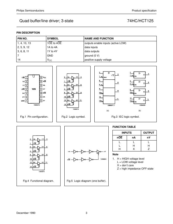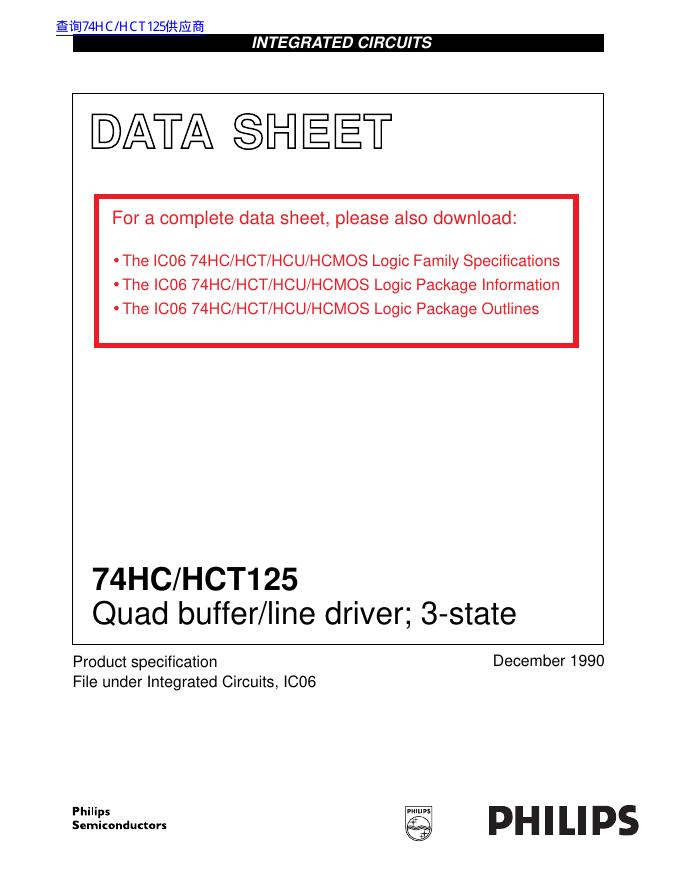 PHILIPS 74HC/HCT125 Quad buffer/line driver; 3-state 数据手册.pdf