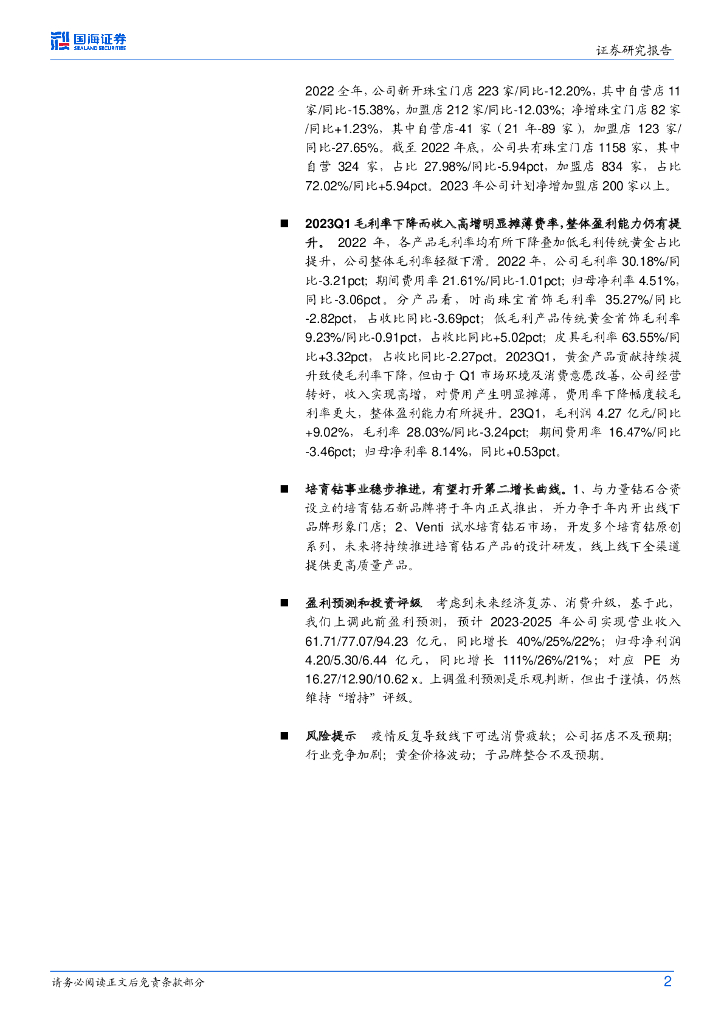国海证券:潮宏基(002345)-2022年报&2023年一季报点评报告:2023Q1复苏高增,培育钻石新品牌落地可期.pdf