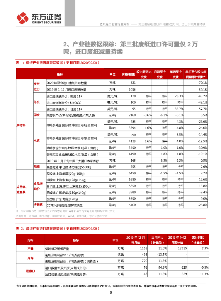 东方证券:造纸产业链数据每周速递:第三批废纸进口许可量仅2万吨,进口废纸减量持续.pdf