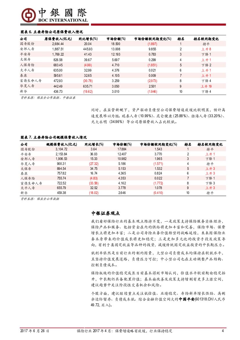 中银国际:保险行业2017年4月:保费增速略有放缓,行业保持稳定.pdf