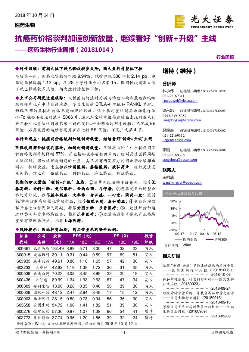 光大证券:医药生物行业周报:抗癌药价格谈判加速创新放量,继续看好“创新+升级”主线.pdf
