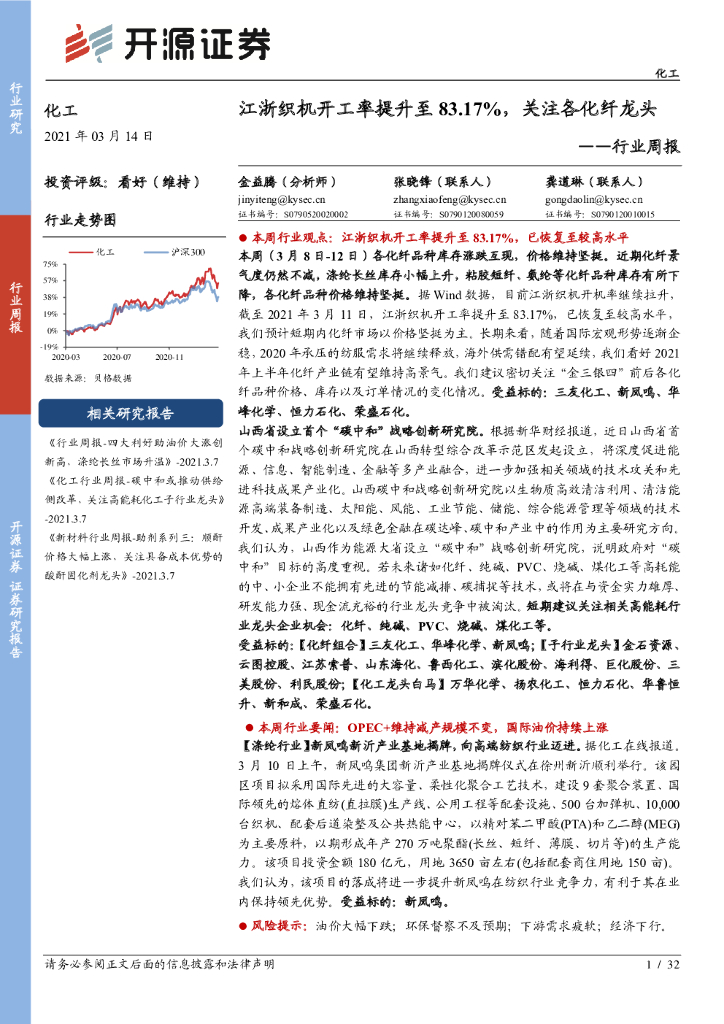 开源证券:化工行业周报:江浙织机开工率提升至83.17%,关注各化纤龙头.pdf