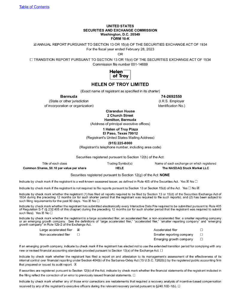 Helen of Troy Limited(HELE)2023财年年度报告(英文版).pdf