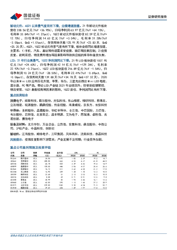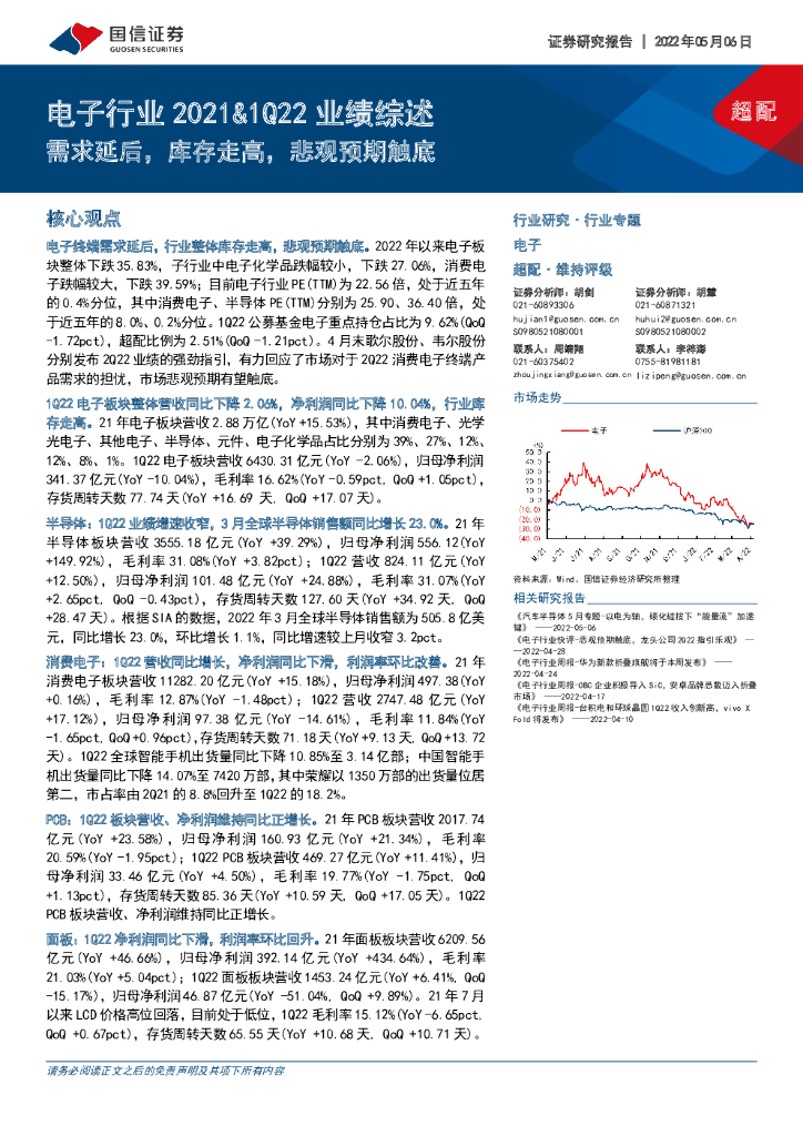 国信证券:电子行业2021&1Q22业绩综述:需求延后,库存走高,悲观预期触底.pdf