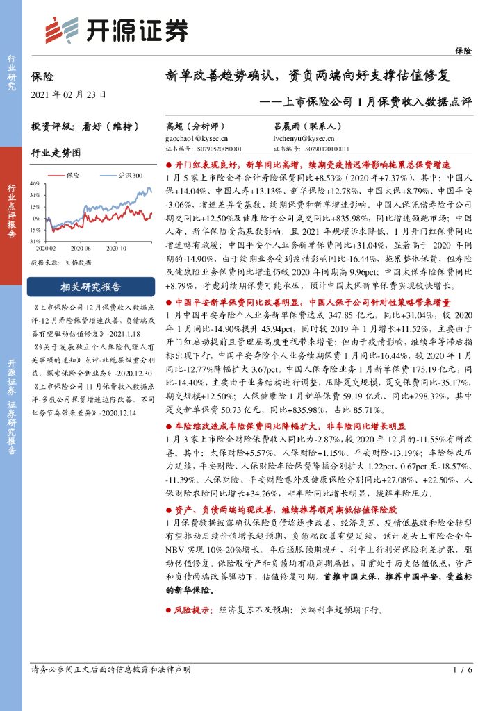 开源证券:上市保险公司1月保费收入数据点评:新单改善趋势确认,资负两端向好支撑估值修复.pdf