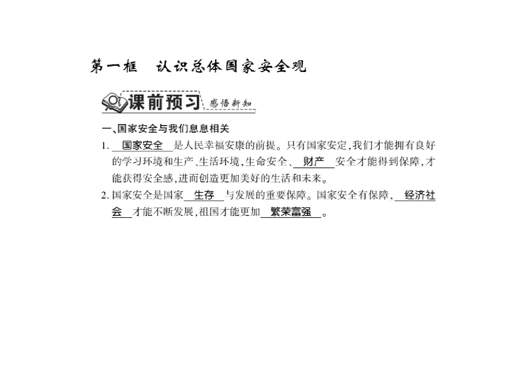 2021人教版八年级道德与法治上册习题课件:第九课第一框认识总体国家安全观.ppt
