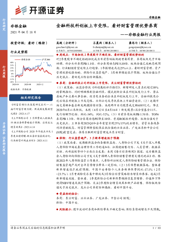 开源证券:非银金融行业周报:金融科技科创板上市受限,看好财富管理优势券商.pdf