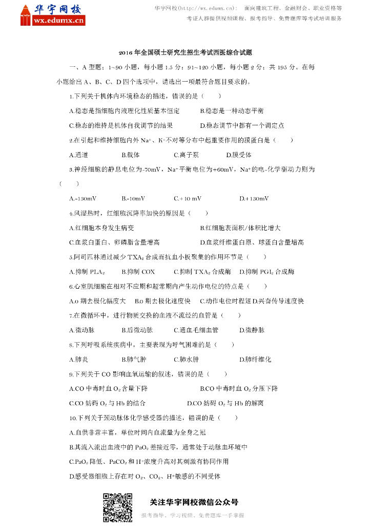 2016年全国硕士研究生招生考试西医综合试题.pdf