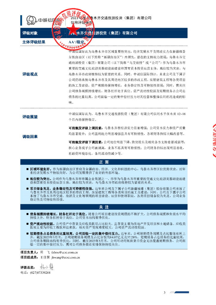中诚信:乌鲁木齐交通旅游投资(集团)有限公司主体信用评级报告.pdf