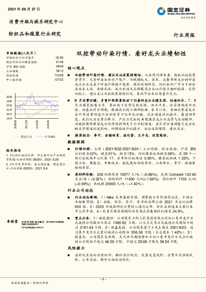 国金证券:纺织品和服装行业研究周报:双控带动印染行情,看好龙头业绩韧性.pdf