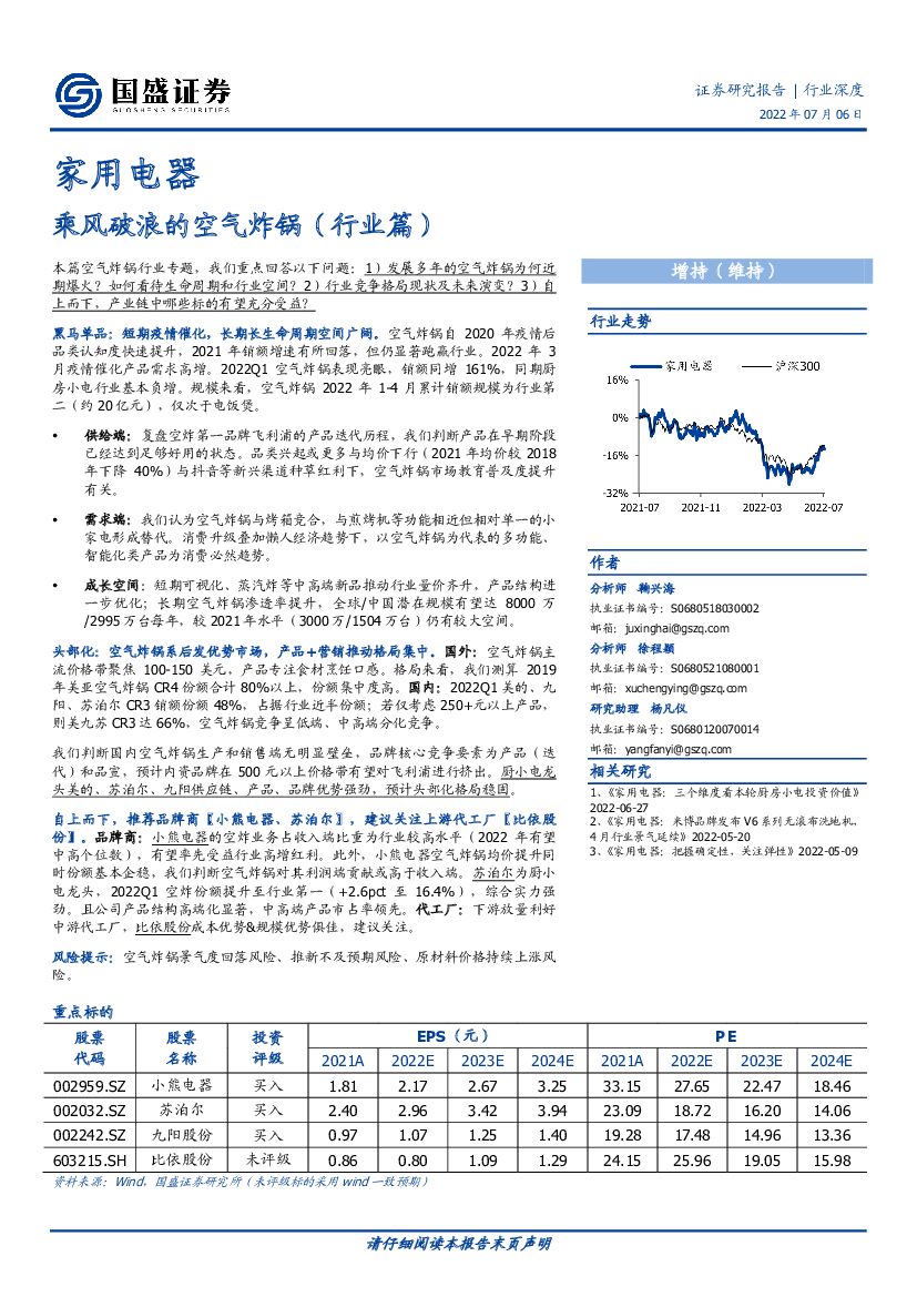 国盛证券:家用电器行业深度:乘风破浪的空气炸锅(行业篇).pdf
