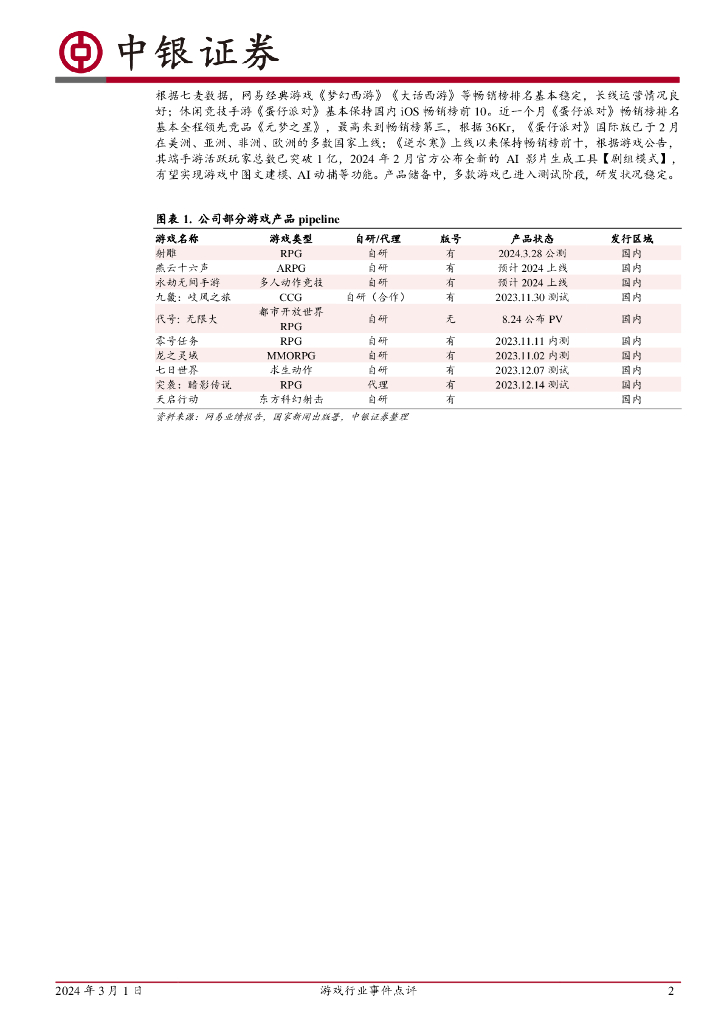中银证券:游戏行业事件点评:网易23Q4:自研游戏表现亮眼,净利润同比大增.pdf