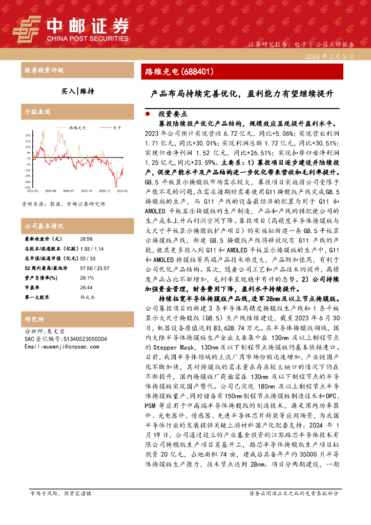 中邮证券:路维光电(688401)-产品布局持续完善优化,盈利能力有望继续提升.pdf