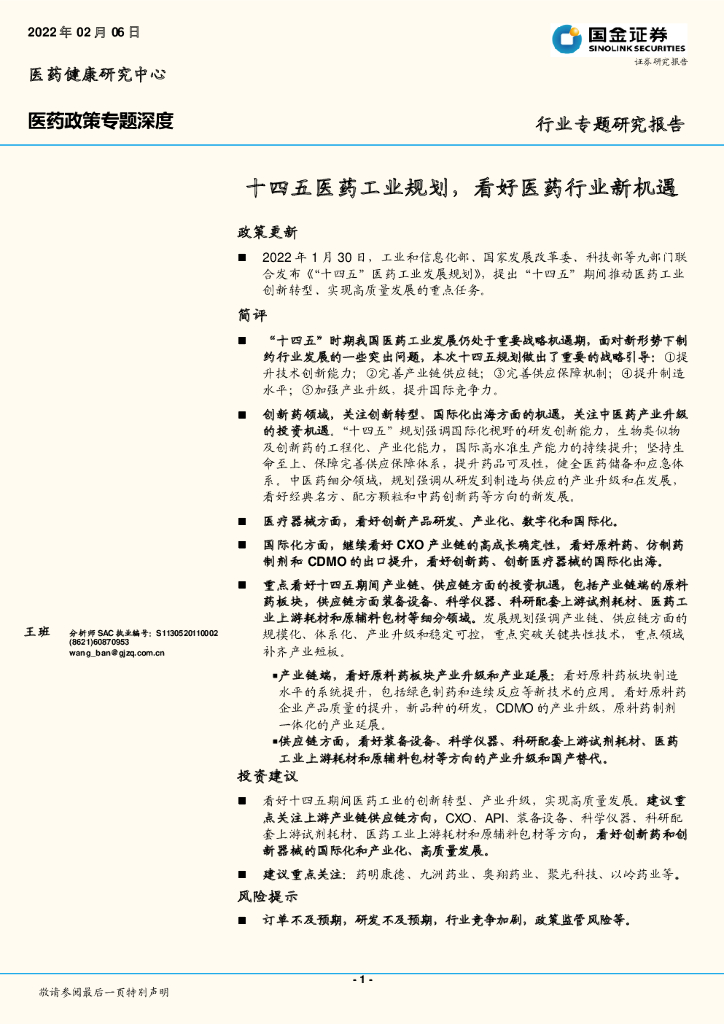 国金证券:医药健康行业专题研究报告:十四五医药工业规划,看好医药行业新机遇.pdf