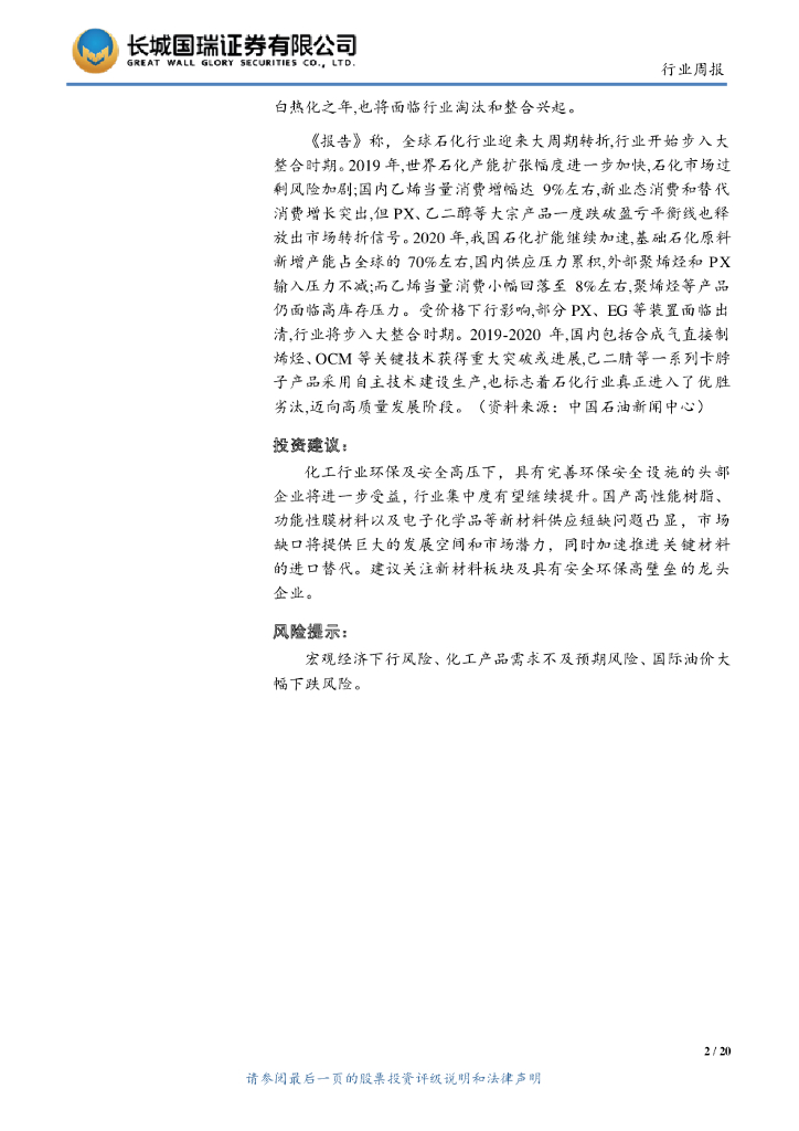 长城国瑞证券:化工行业双周报2019年第25期(总第25期):全国安全生产集中整治工作深入推进 国内首批能化期权在郑商所上市.pdf