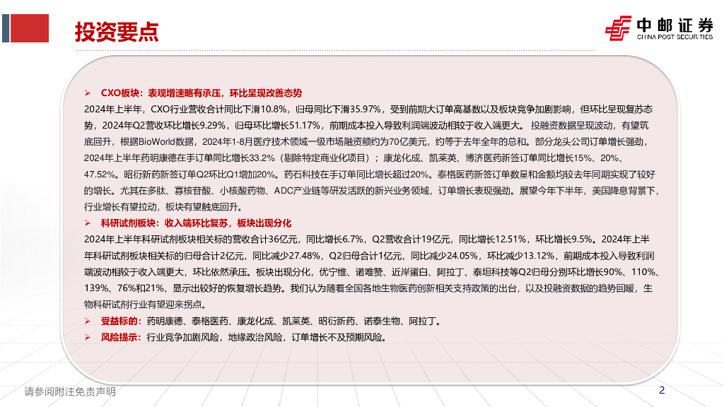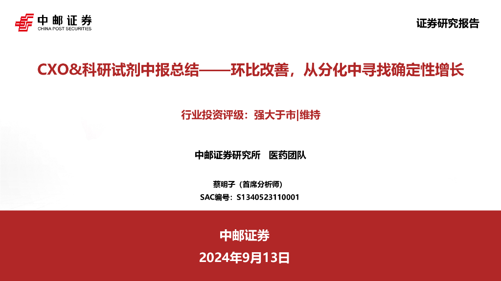 中邮证券:CXO&科研试剂中报总结:环比改善,从分化中寻找确定性增长.pdf