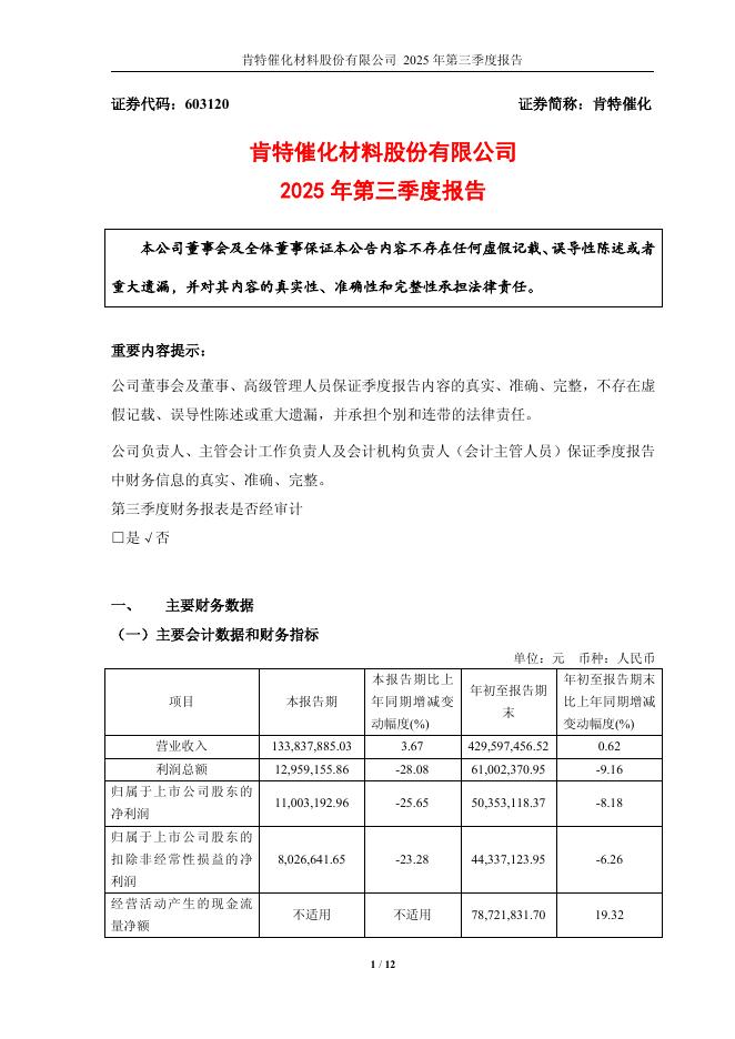 603120-肯特催化:2025年第三季度报告.pdf