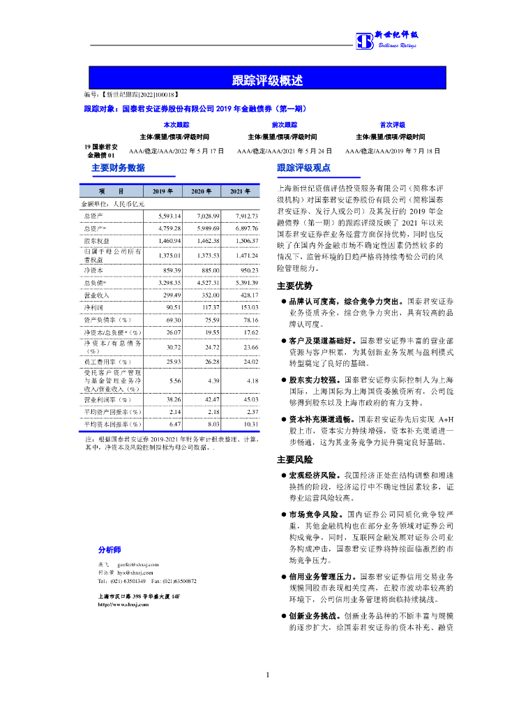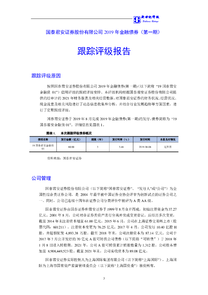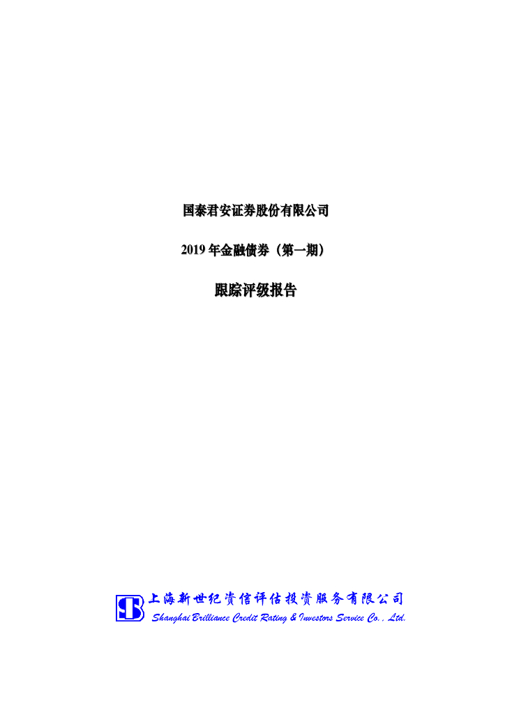 新世纪:国泰君安证券股份有限公司2019年金融债券(第一期)跟踪评级报告.pdf