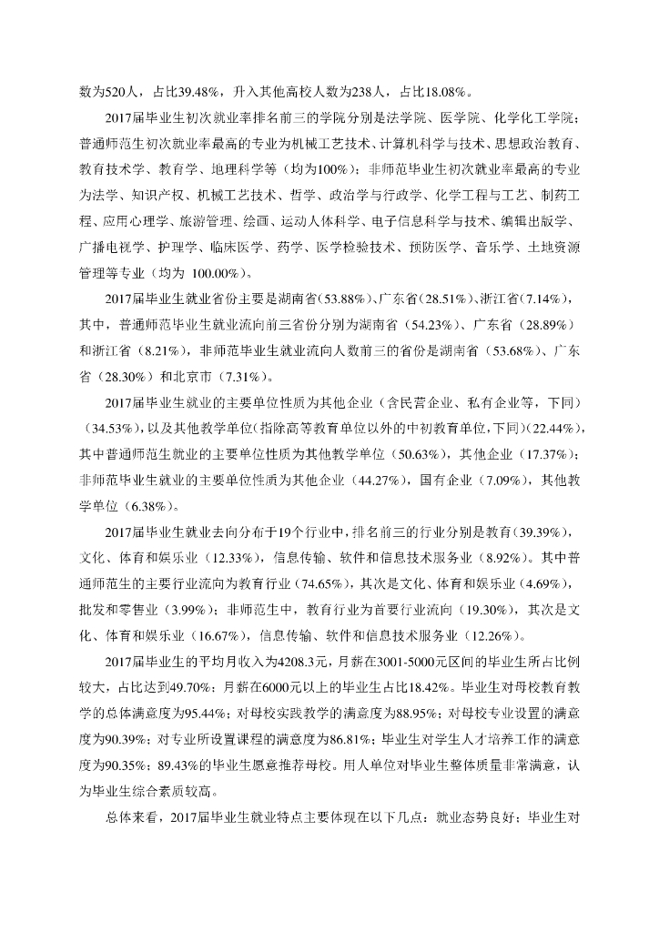 湖南师范大学2017届本科毕业生就业质量年度报告.pdf