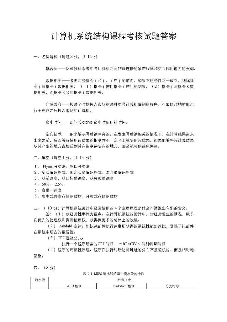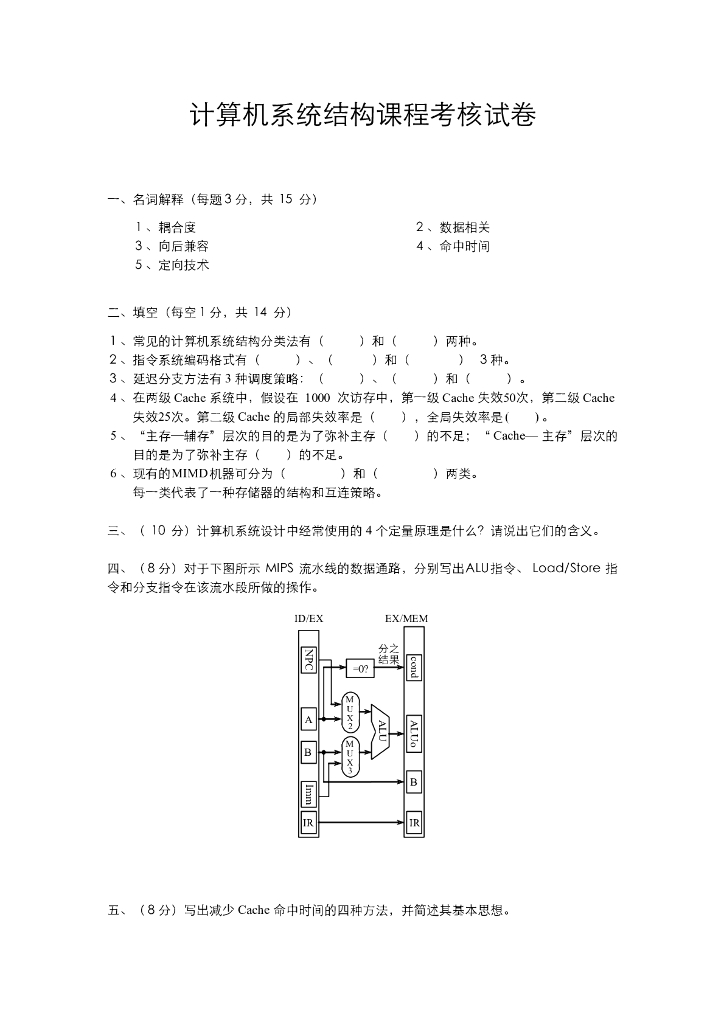 《计算机系统结构》测试试卷-计算机系统结构课程期末考试试卷和答案题解.pdf