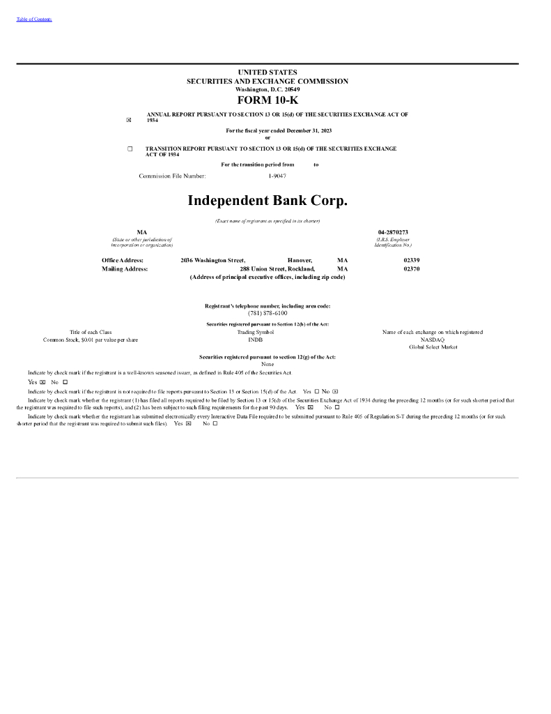 Independent Bank Corp(INDB)2023财年年度报告(英文版).pdf