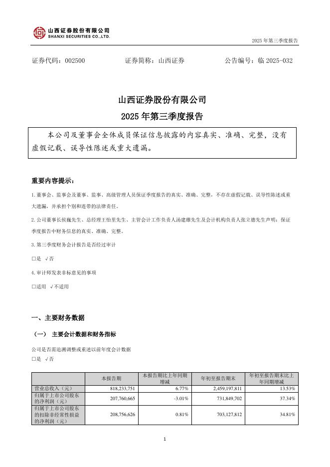 002500-山西证券:2025年三季度报告.pdf