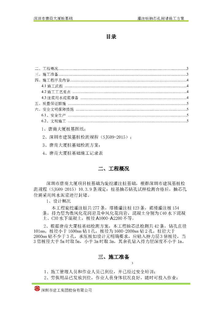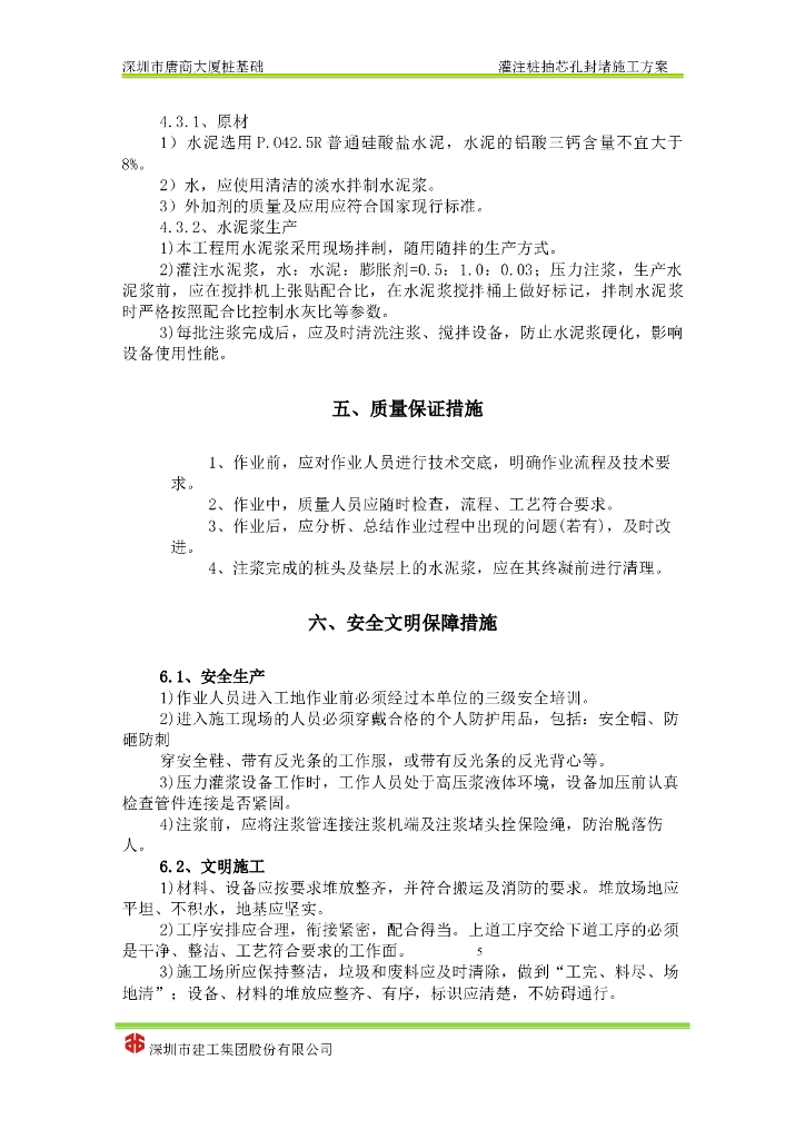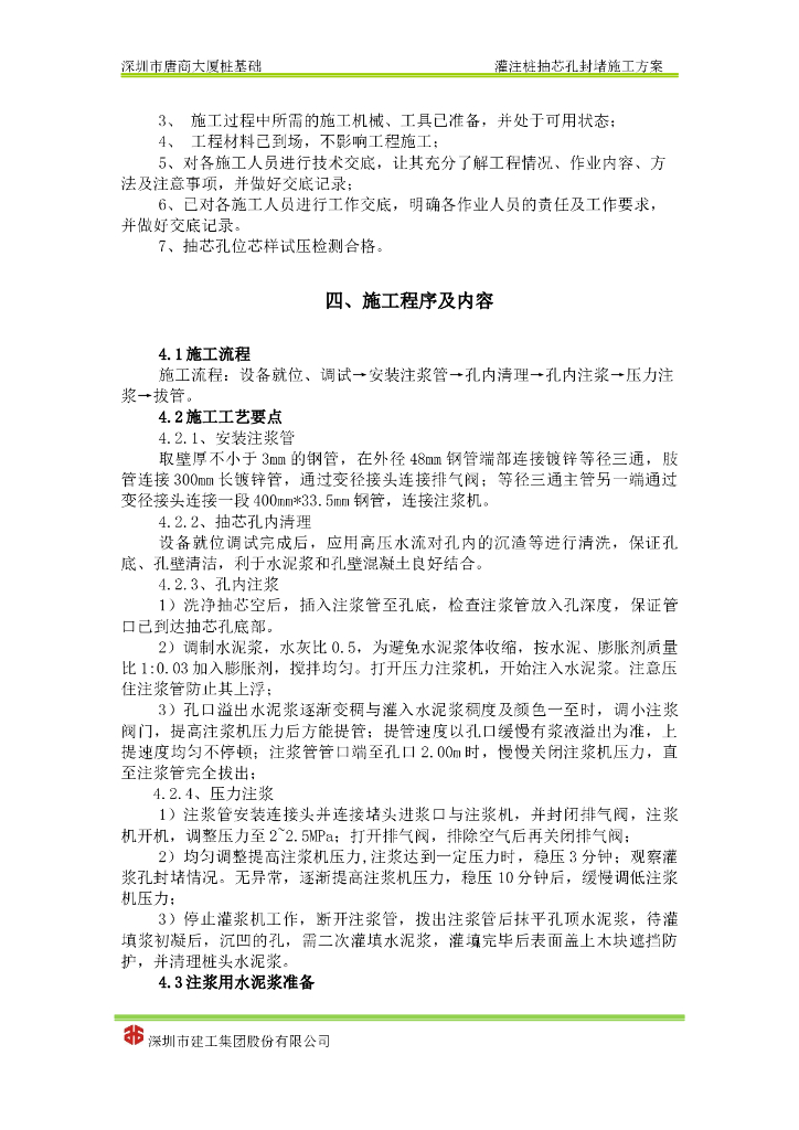 大厦灌注桩抽芯孔封堵施工方案(5页).doc