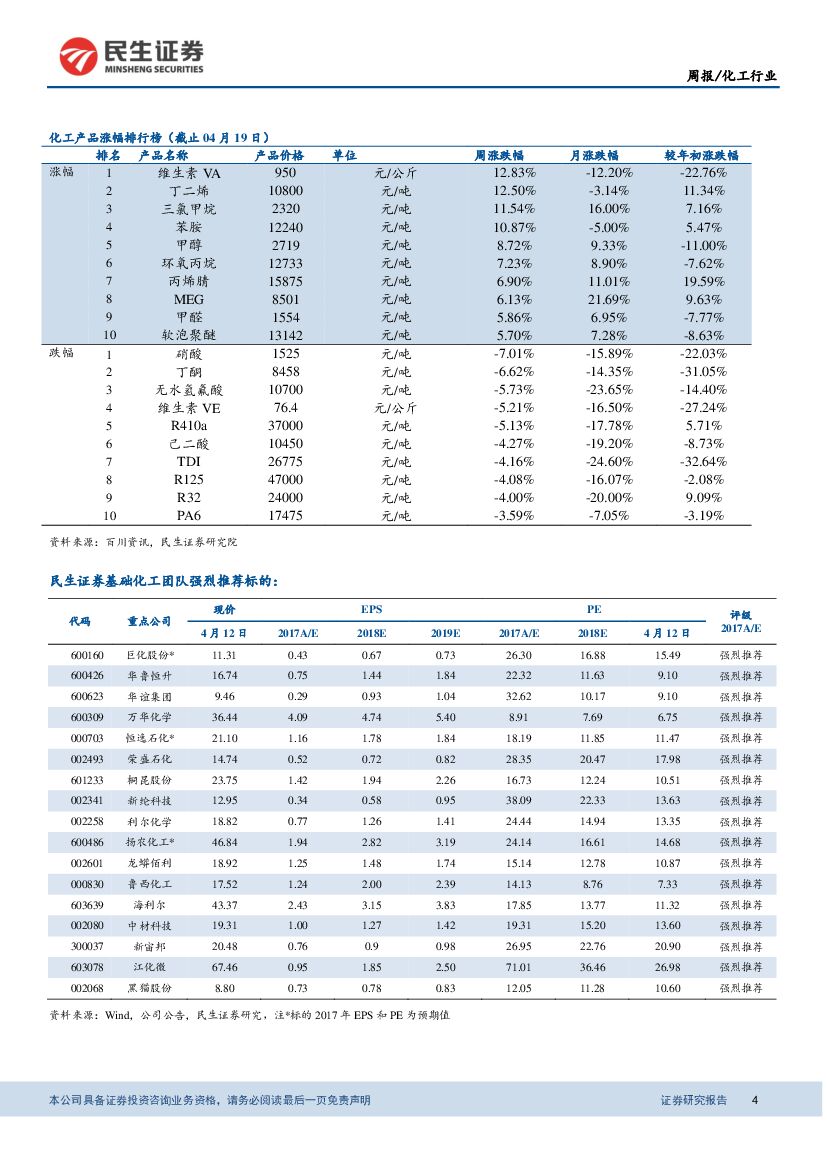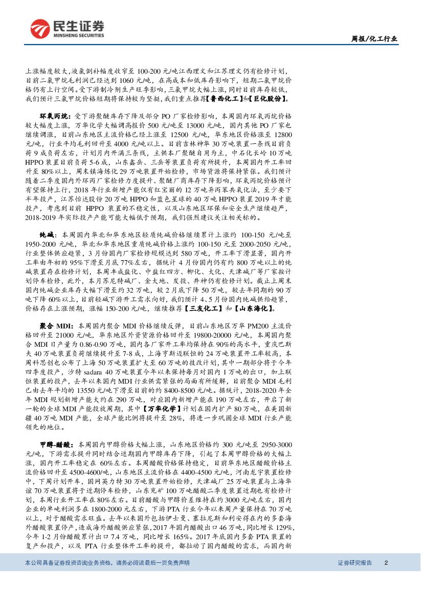 民生证券:化工周报:甲醇、甲烷氯化物价格上涨,涤纶长丝继续保持高景气.pdf