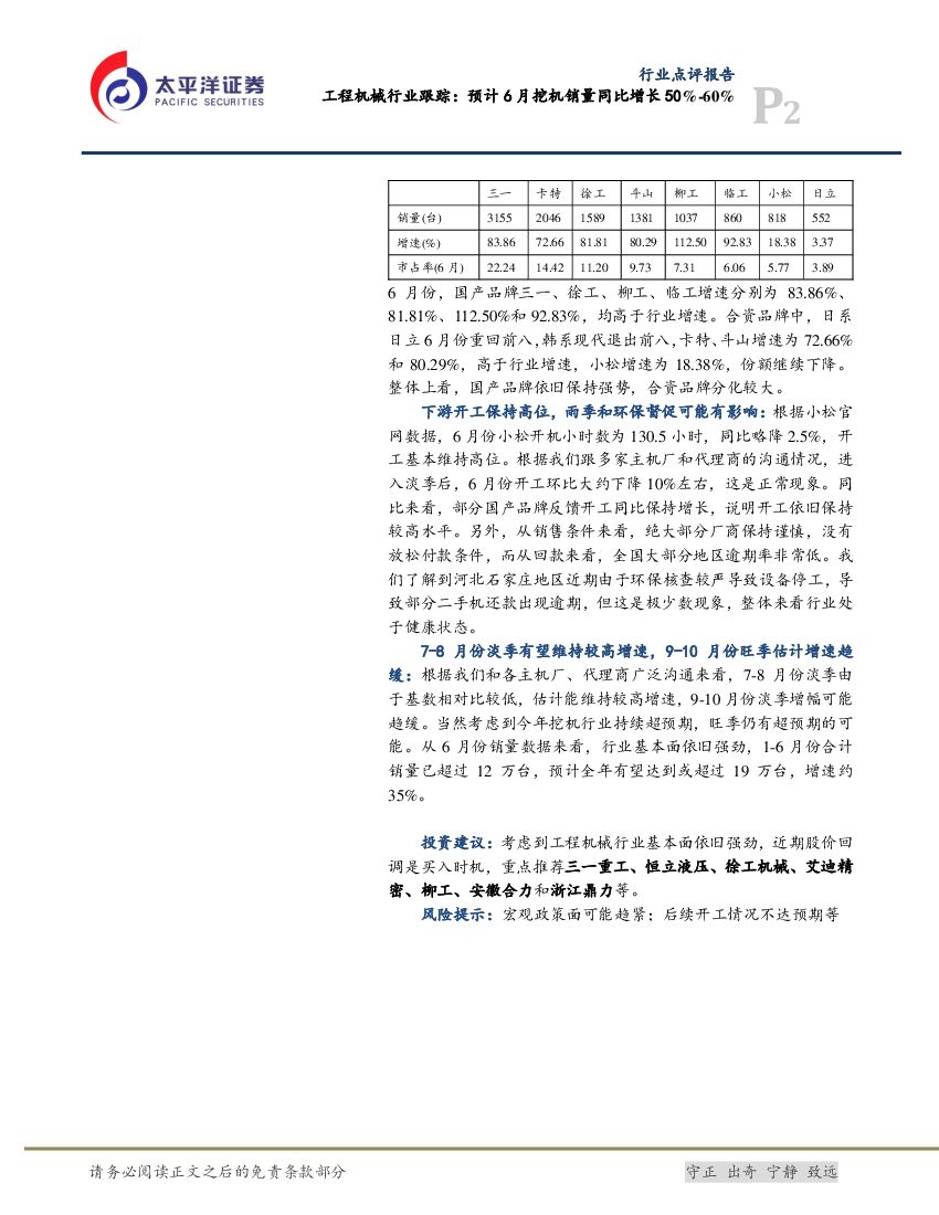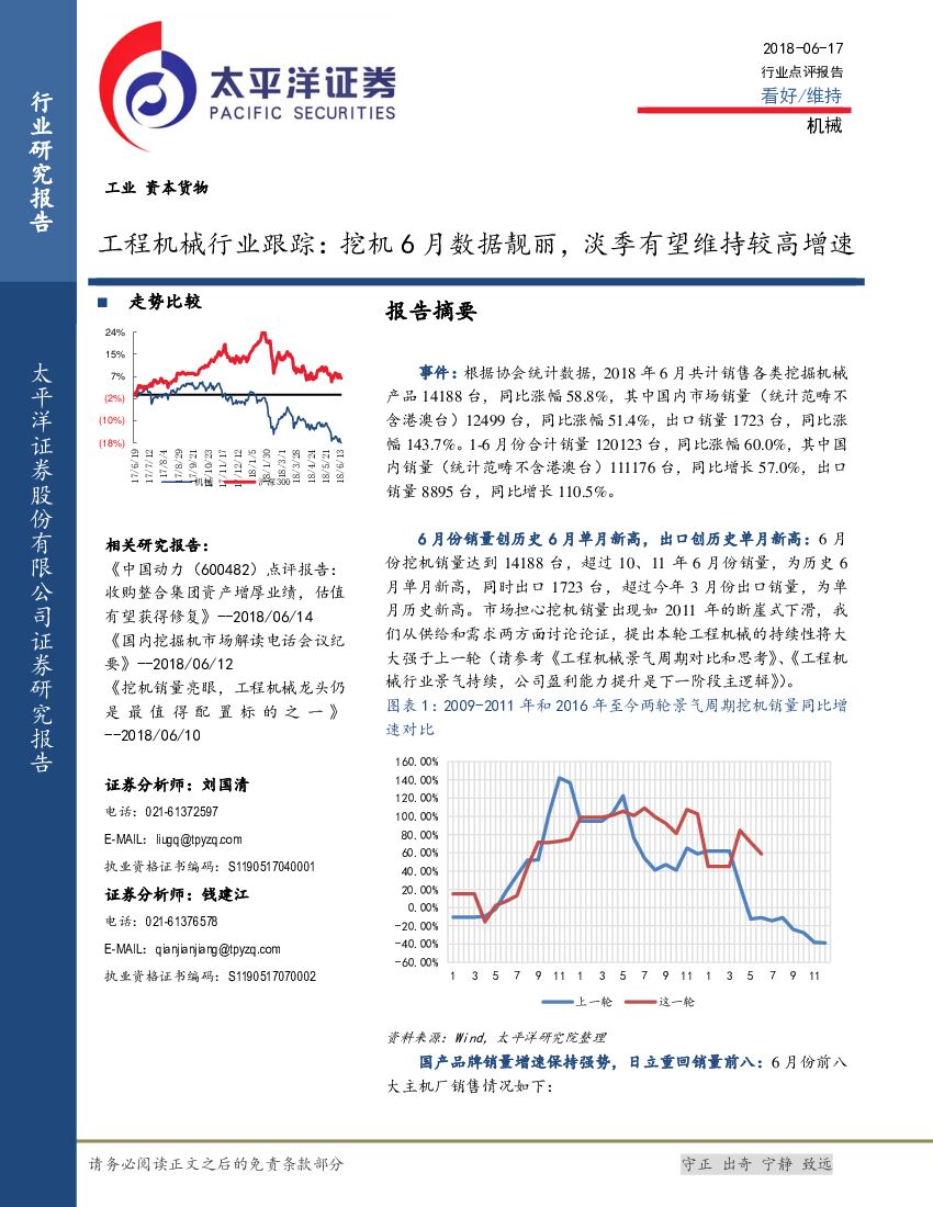 太平洋证券:工程机械行业跟踪:挖机6月数据靓丽,淡季有望维持较高增速.pdf