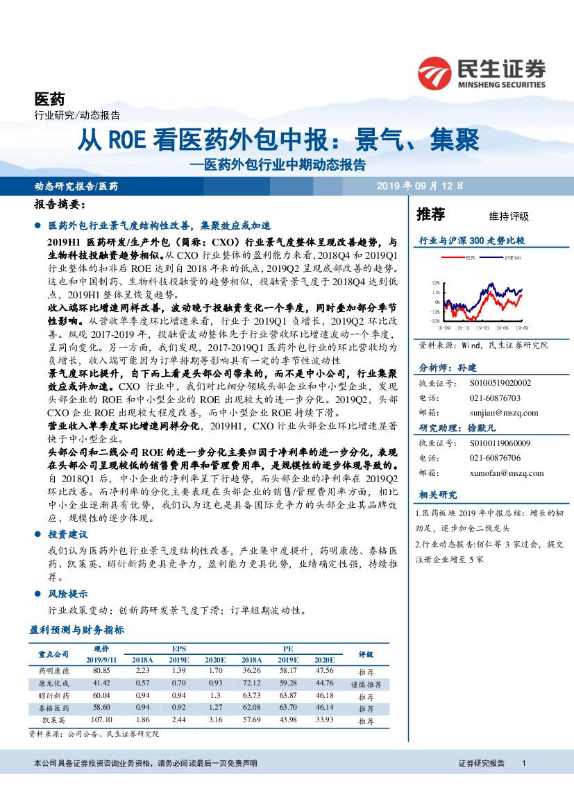 民生证券:医药外包行业中期动态报告:从ROE看医药外包中报:景气、集聚.pdf