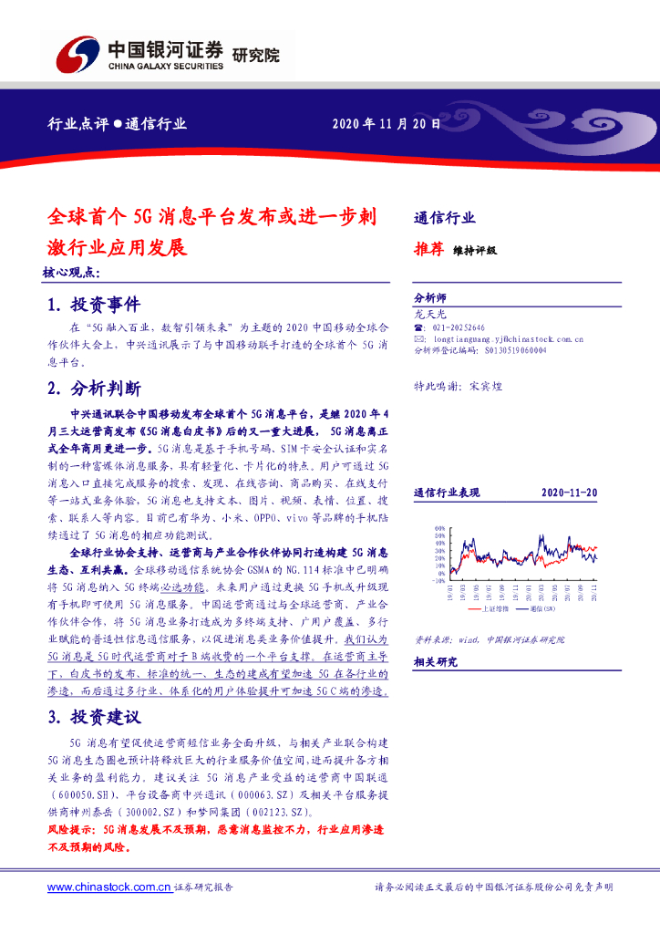 中国银河:通信行业:全球首个5G消息平台发布或进一步刺激行业应用发展.pdf