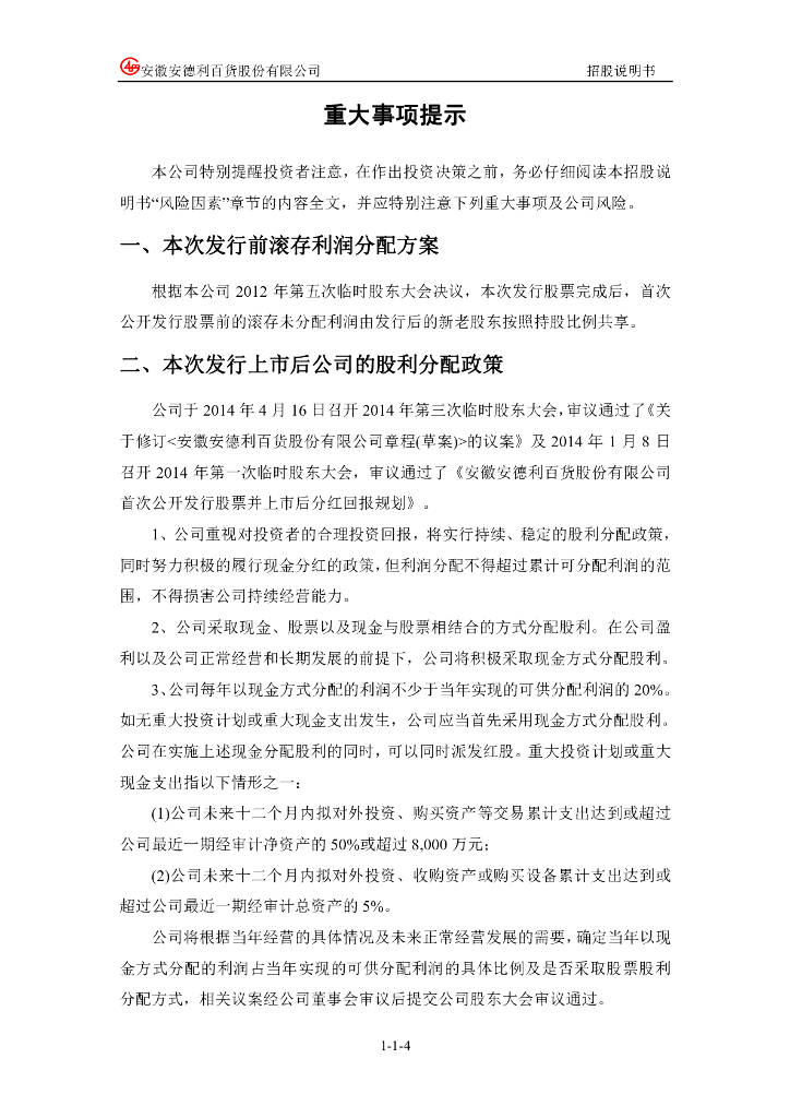 安徽安德利百货股份有限公司上交所主板IPO上市招股说明书.pdf