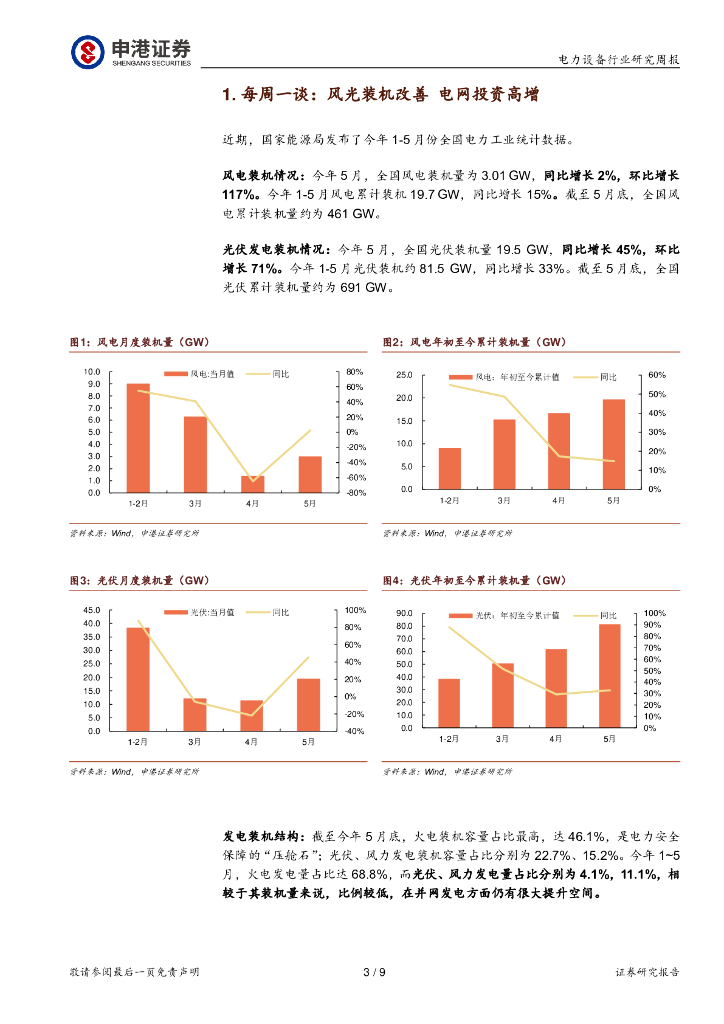 申港证券:电力设备行业研究周报:风光装机改善,电网投资高增.pdf