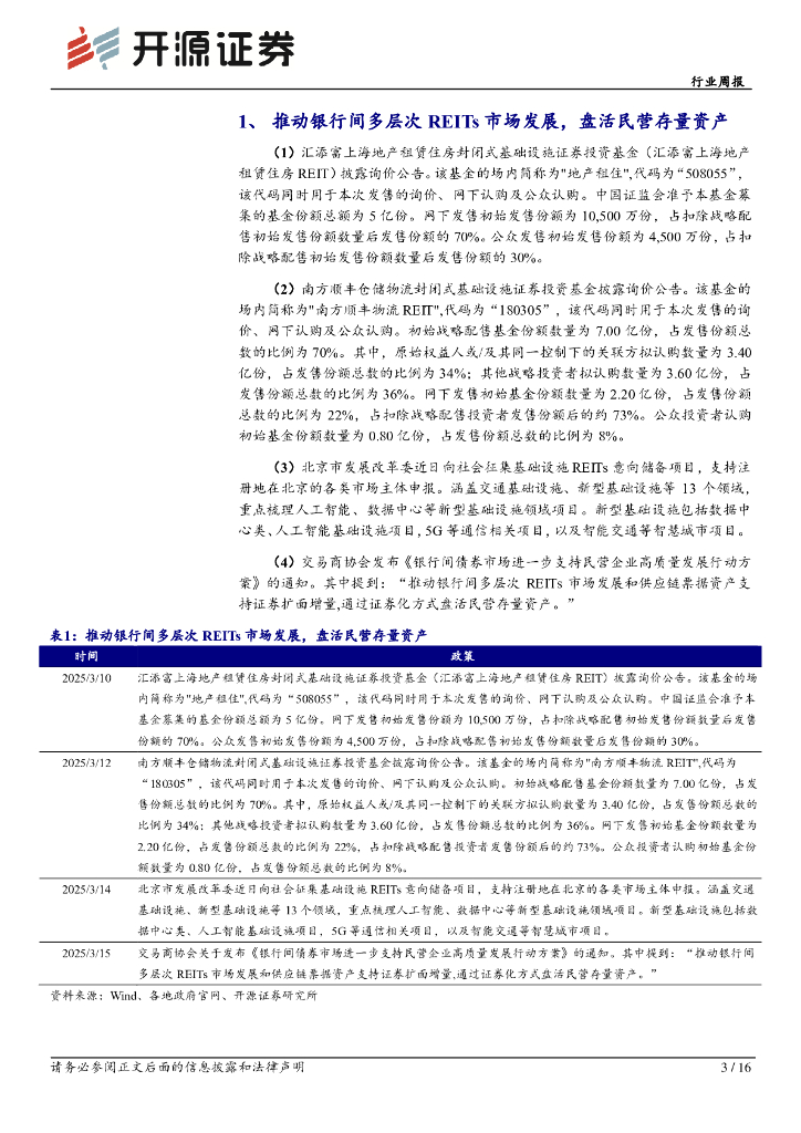 开源证券:REITs行业周报:推动银行间多层次REITs市场发展,消费REIT单周表现优异.pdf