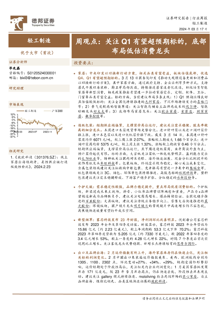 德邦证券:轻工制造行业周观点:关注Q1有望超预期标的,底部布局低估消费龙头.pdf