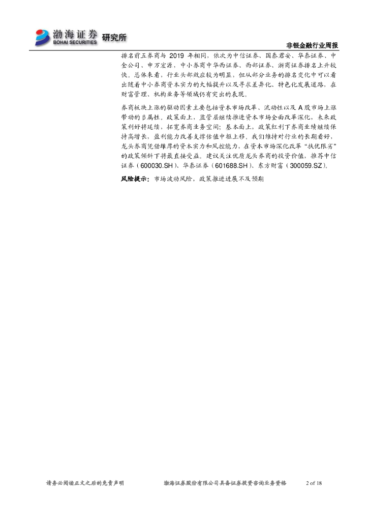 渤海证券:非银金融行业周报:2020年经营情况排名发布,看好差异化发展道路.pdf