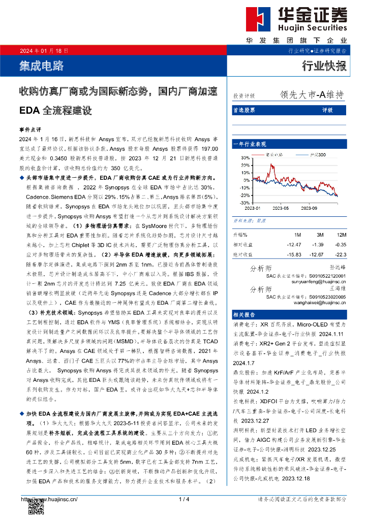 华金证券:集成电路行业快报:收购仿真厂商或为国际新态势,国内厂商加速EDA全流程建设.pdf