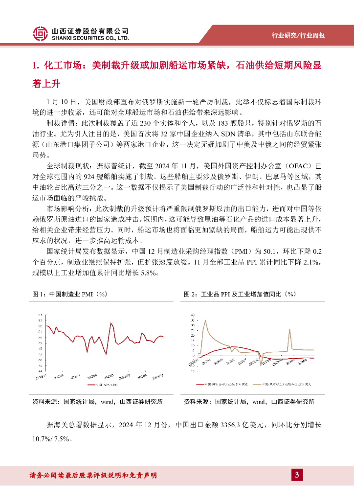 山西证券:基础化工行业周报:行业周报(20250106-0112)美制裁升级或加剧船运市场紧缺,石油供给短期风险显著上升.pdf