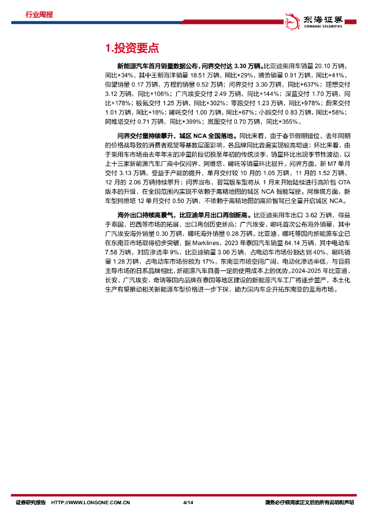 东海证券:汽车行业周报(2024/01/29-2024/02/04):新势力发布2024年首月交付数据,问界交付量持续攀升.pdf