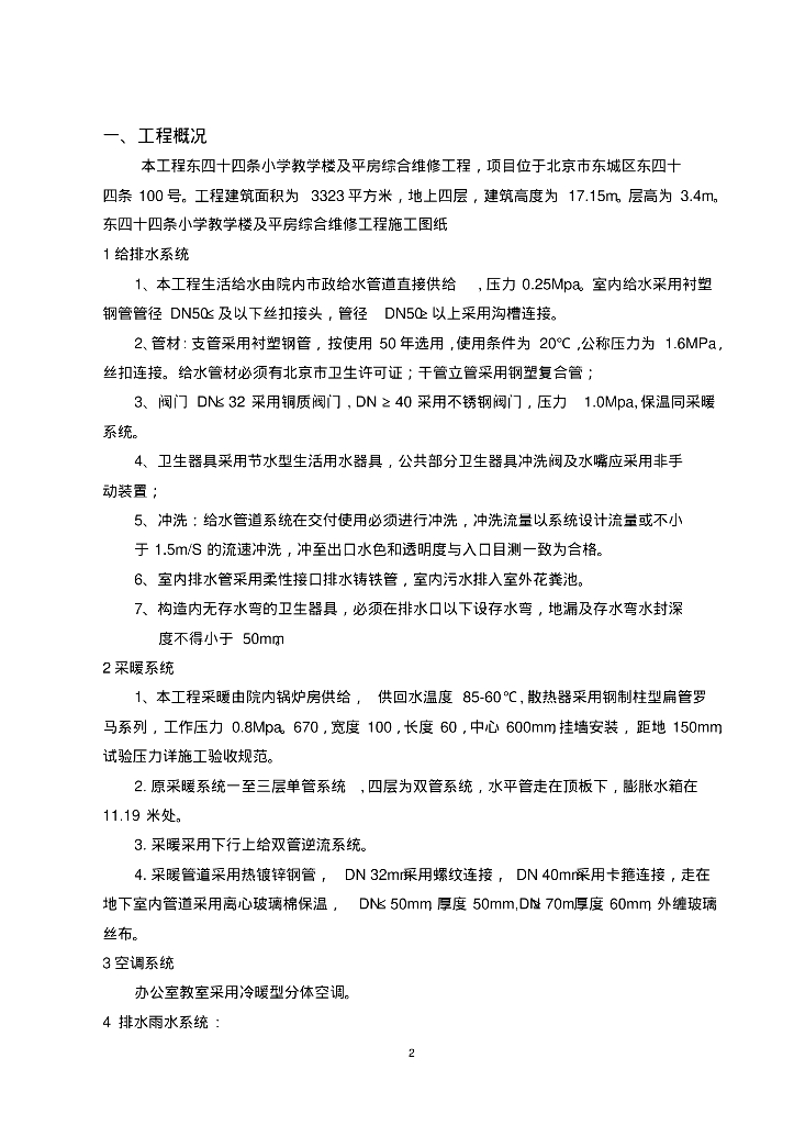 [北京]小学教学楼及平房综合维修工程给排水采暖消防施工方案.pdf