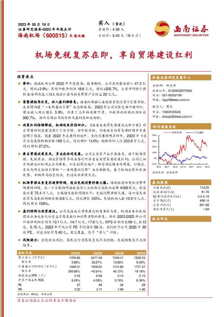 西南证券:海南机场(600515)-机场免税复苏在即,享自贸港建设红利.pdf