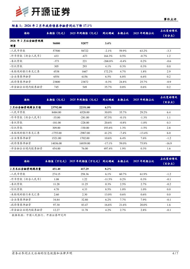 开源证券:2026年2月金融数据点评:社融新增超预期增长,M1、M2剪刀差进一步收窄-260316.pdf