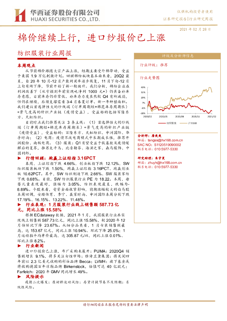 华西证券:纺织服装行业周报:棉价继续上行,进口纱报价已上涨.pdf