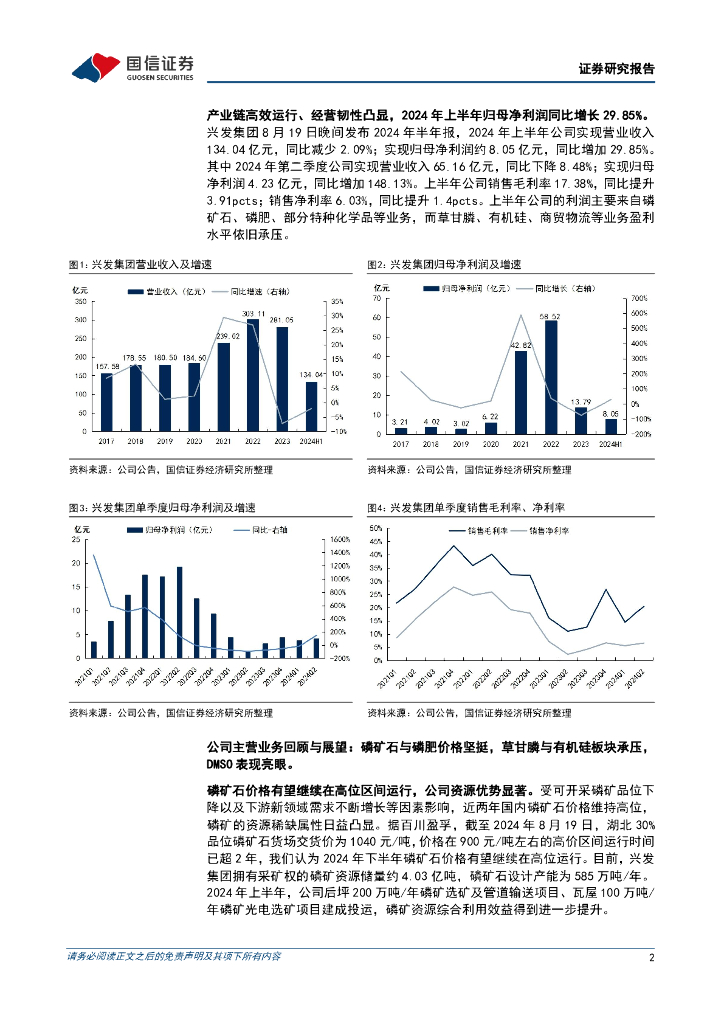 国信证券:兴发集团(600141)-2024年半年报点评:上半年归母净利润同比增长29.85%,新项目稳步推进.pdf