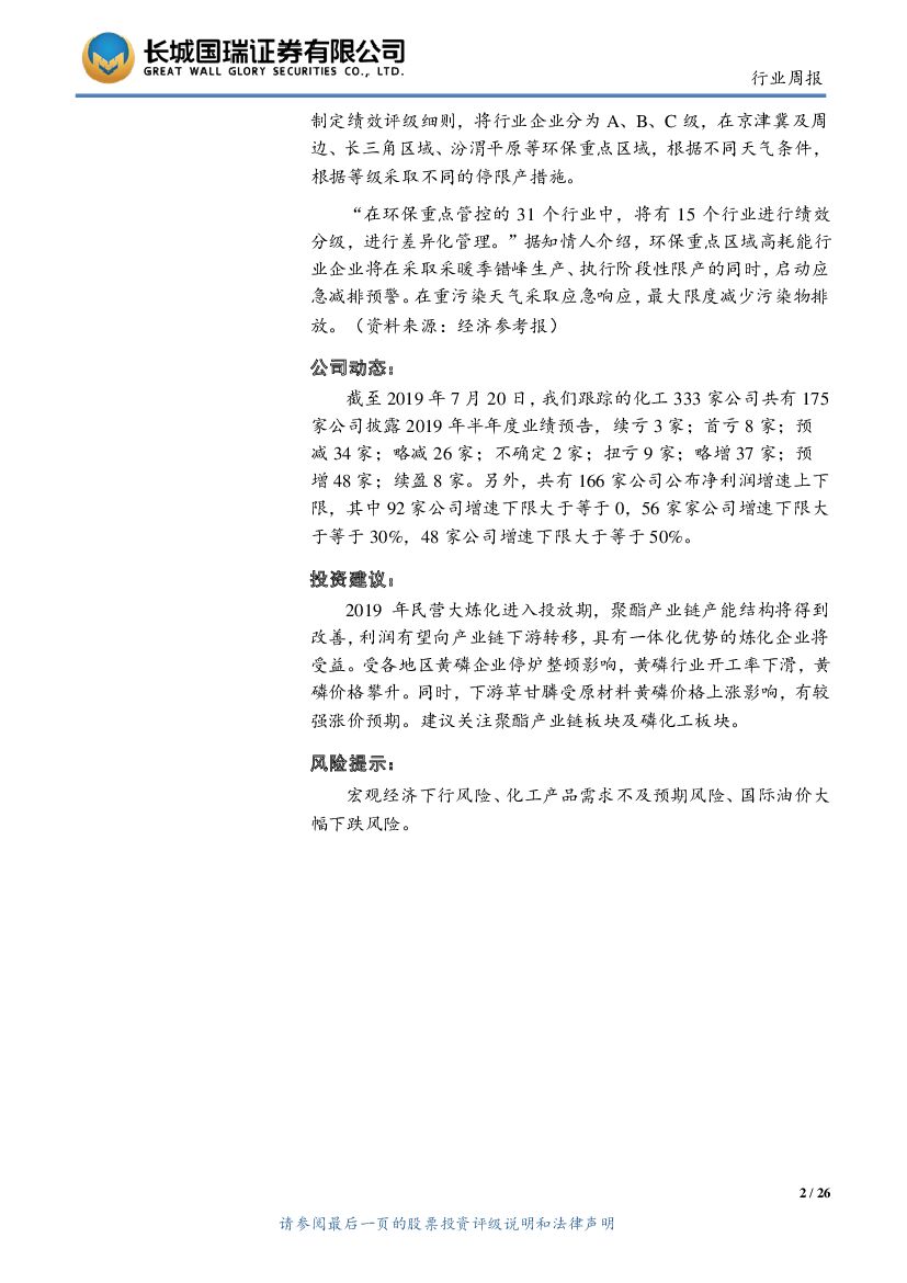长城国瑞证券:化工行业双周报2019年第14期(总第14期):第二轮首批中央生态环保督察全部进驻,6月OPEC原油日均产量下降至2983万桶.pdf