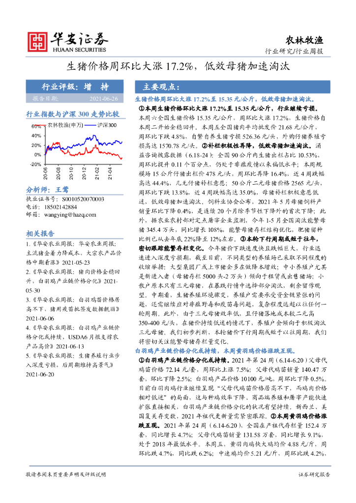 华安证券:农林牧渔行业周报:生猪价格周环比大涨17.2%,低效母猪加速淘汰.pdf