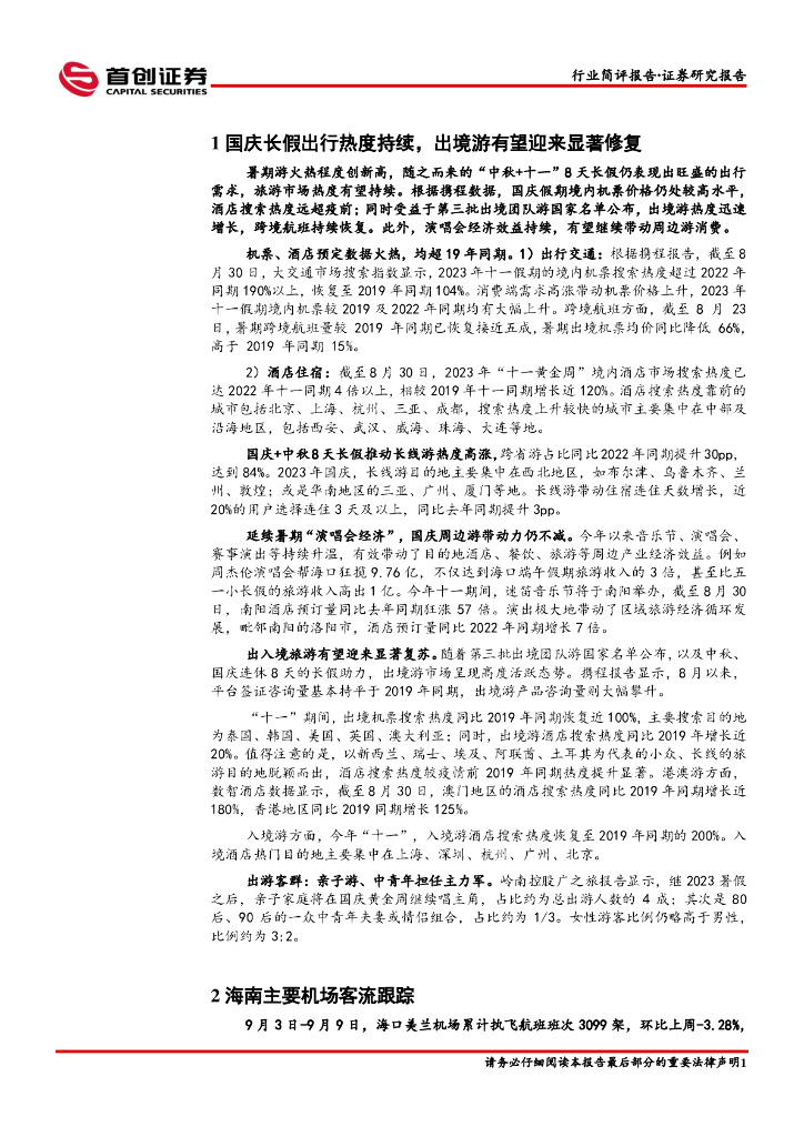 首创证券:社会服务行业简评报告:国庆长假出行热度持续,出境游有望迎来显著修复.pdf