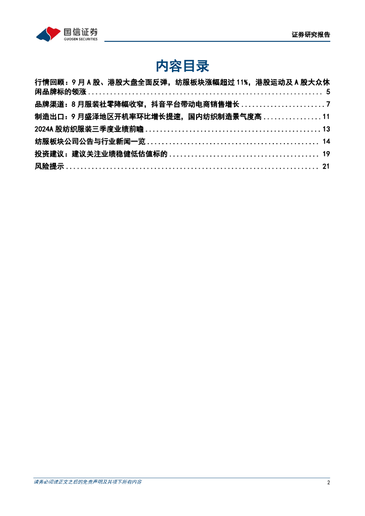 国信证券:纺织服装10月投资策略暨三季度业绩前瞻:运动及大众休闲标的领涨,窗口期关注业绩稳健低估值标的.pdf