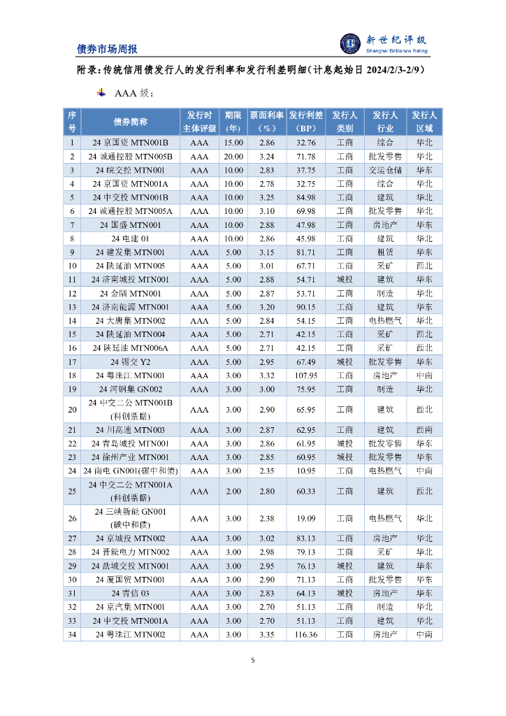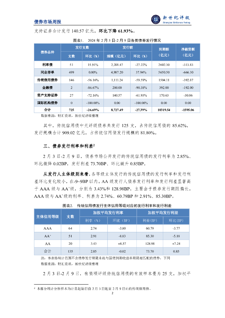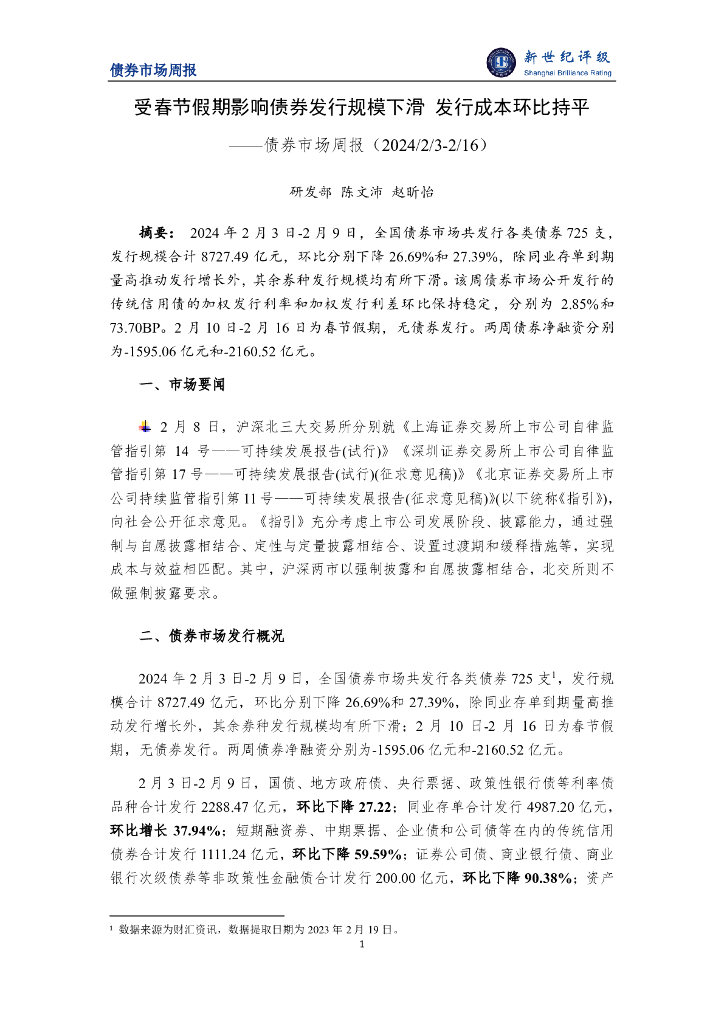新世纪评级:受春节假期影响债券发行规模下滑 发行成本环比持平——债券市场周报(2024/2/3-2/16).pdf